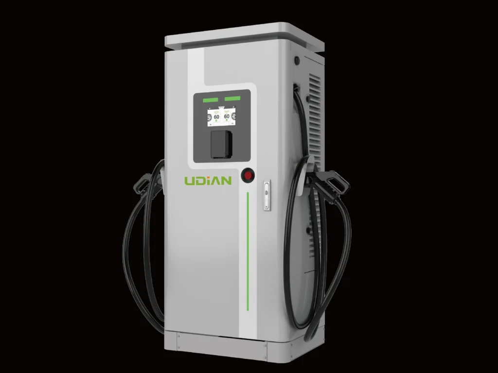 The overall appearance of the right side of the UDB-200 DC charging pile, showing its sturdy industrial design and user-friendly interface
