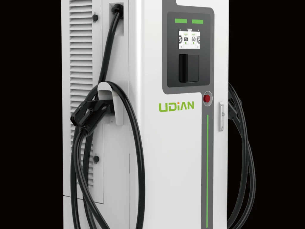 Left view of the internal structure of the UDB200 DC charging station, showing the built-in modular charging unit